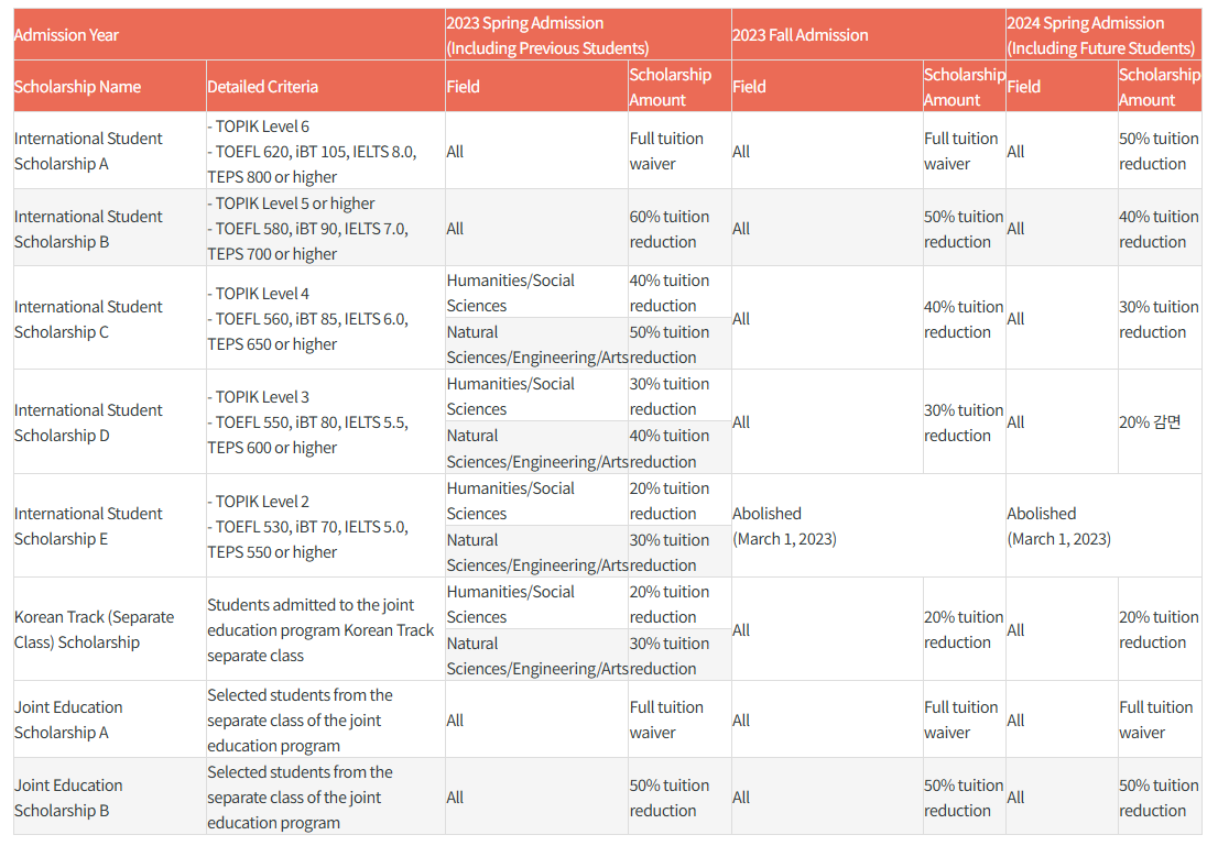 - Purpose: Scholarships are provided to motivate international students in their studies and help them adapt to life in Korea.