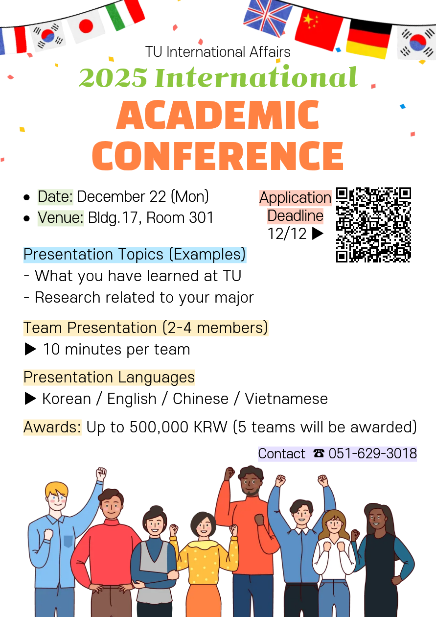 📄 Deadline for Presentation File Submission: December 18 (strict deadline) → Email: chaepari@tu.ac.kr